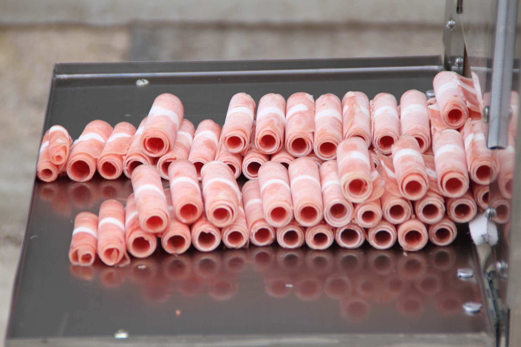 鴻祥瑞數(shù)控切片機HXR-S2型一次可以切2卷(板)羊肉或肥牛,鴻祥瑞數(shù)控切片機采用西門子PLC控制,步進電機傳動,徹底解決了機械切片機故障率高的難題,真正意義上實現(xiàn)了全自動化。紅外線感應安全防護裝置(選裝),公司通過市場調(diào)研,特研發(fā)一次性刀具,解決部分客戶磨刀難的問題。雙導向推進器,自動進退,起刀高度18CM,可以立著切肥牛板,調(diào)整厚薄不用停機,可根據(jù)所需要的厚度在數(shù)控開關(guān)自動加減,每小時可切肉50-100公斤,工作臺采用食品專用有機塑料板制成,保證食品安全、衛(wèi)生,肉卷無需解凍,可直接上機操作,并可切出多種卷形(粗卷、細卷、長卷),成形整齊、美觀,并成排列狀,容易包裝,加工效率高、安全、節(jié)省人工。是大型火鍋店、大中型牛羊肉批發(fā)商的理想選擇。